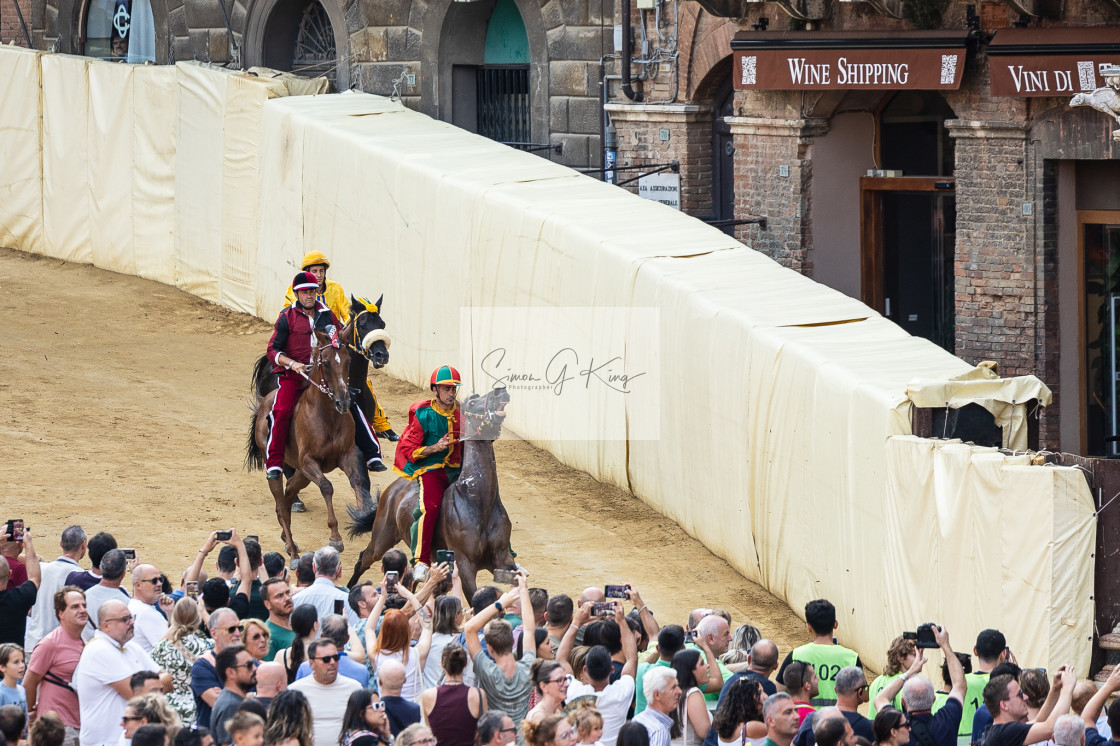 Fantino Andrea Coghe detto Tempsta for Drago Contrada in the Seconda prova during the Palio di Siena in Siena, Tuscany, Italy on 14 August 2025.